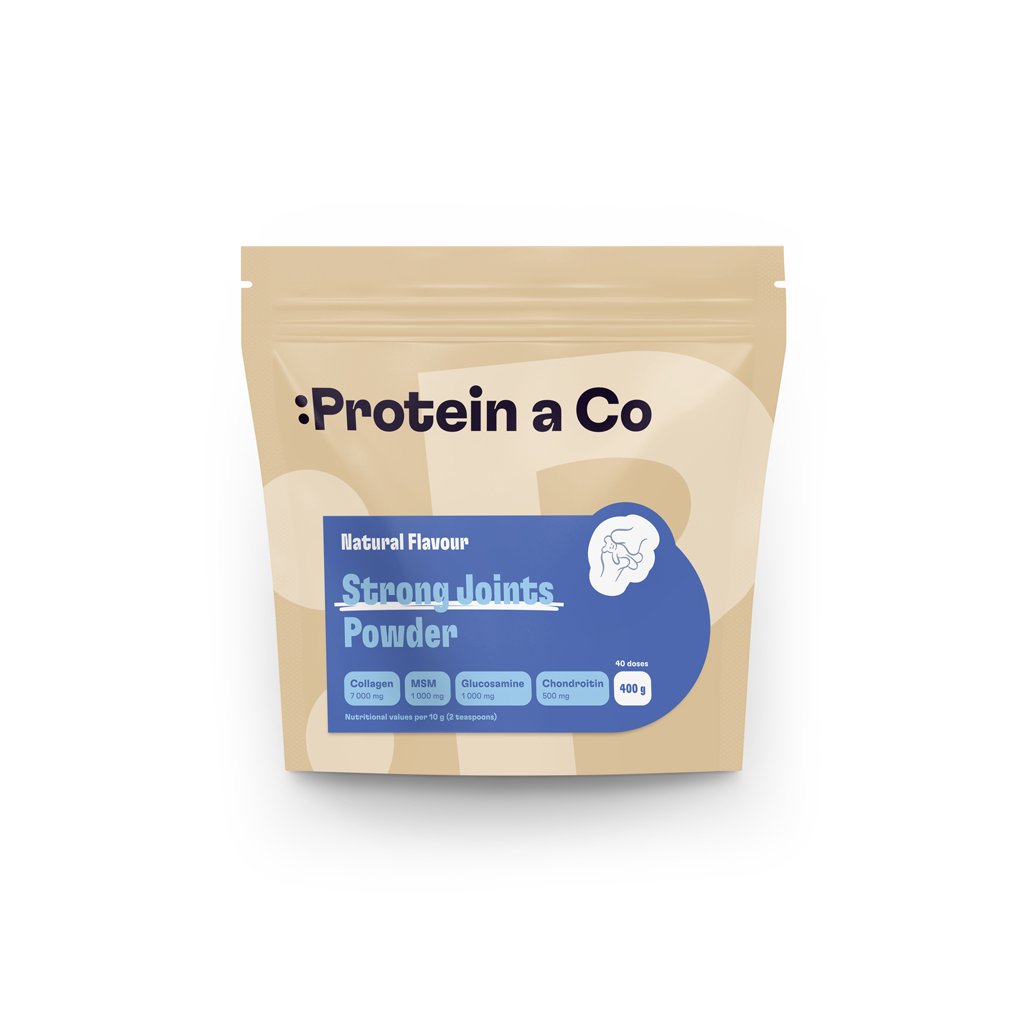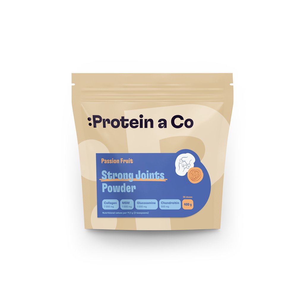 Passion Fruit: hydrolyzované kolagenní peptidy (vepřové), methylsulfonylmethan (MSM), přírodní aroma, chondroitin sulfát, glukosamin sulfát 2KCl, kyselina L-askorbová (vitamin C), glycin, regulátor kyselosti: kyselina citrónová; sladidlo: sukralóza; barvivo: kurkumin