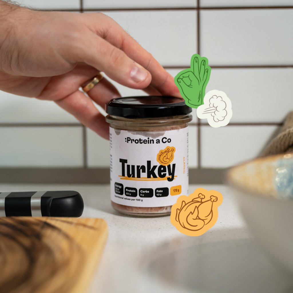 Tohle je splněnej sen všech masožravců. co chtěj mít zdraví i postavičku v topu. Krůtí, který můžeš mít vždycky po ruce a bílkovinama nabitej sendvič nebo jinou sváču s ním vykouzlíš klidně na stole v kanclu nebo na pařezu v lese. Bez potřeby ledničky, vařiče nebo speciálních kulinářskejch dovedností – stačí otevřít a jedeš.