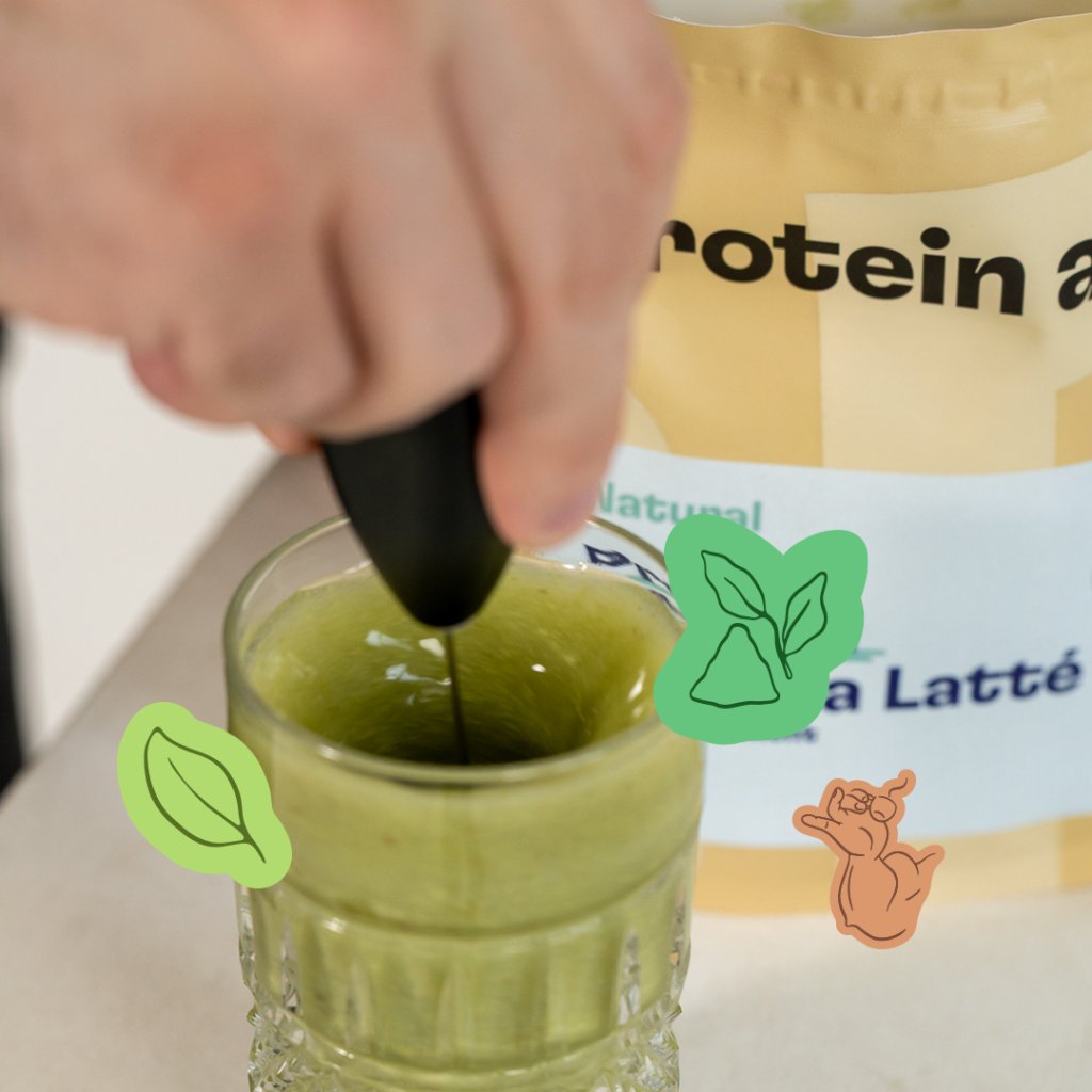 Co všechno na tohle latte nepotřebuješ? Baristickej kurz, kafe, mlíko nebo kávovar. Vystačíš si s Protein Matcha Latte práškem, vodou a šejkrem. Nebo prostě něčím, v čem to pořádně zamícháš.