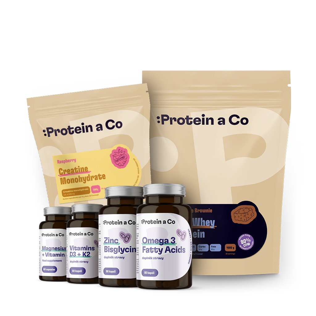 Doplňky stravy jsou fajn pomocníci, ale v začátku ti jich stačí fakt jen pár. Ty, který reálně fungujou a maj smysl i pro začátečníky, nejdeš v tomhle balíčku. Ať nemusíš procházet hory vědeckejch studií (to jsme při výběru udělali za tebe) a utrácet zbytečně prachy za něco, co nepotřebuješ.